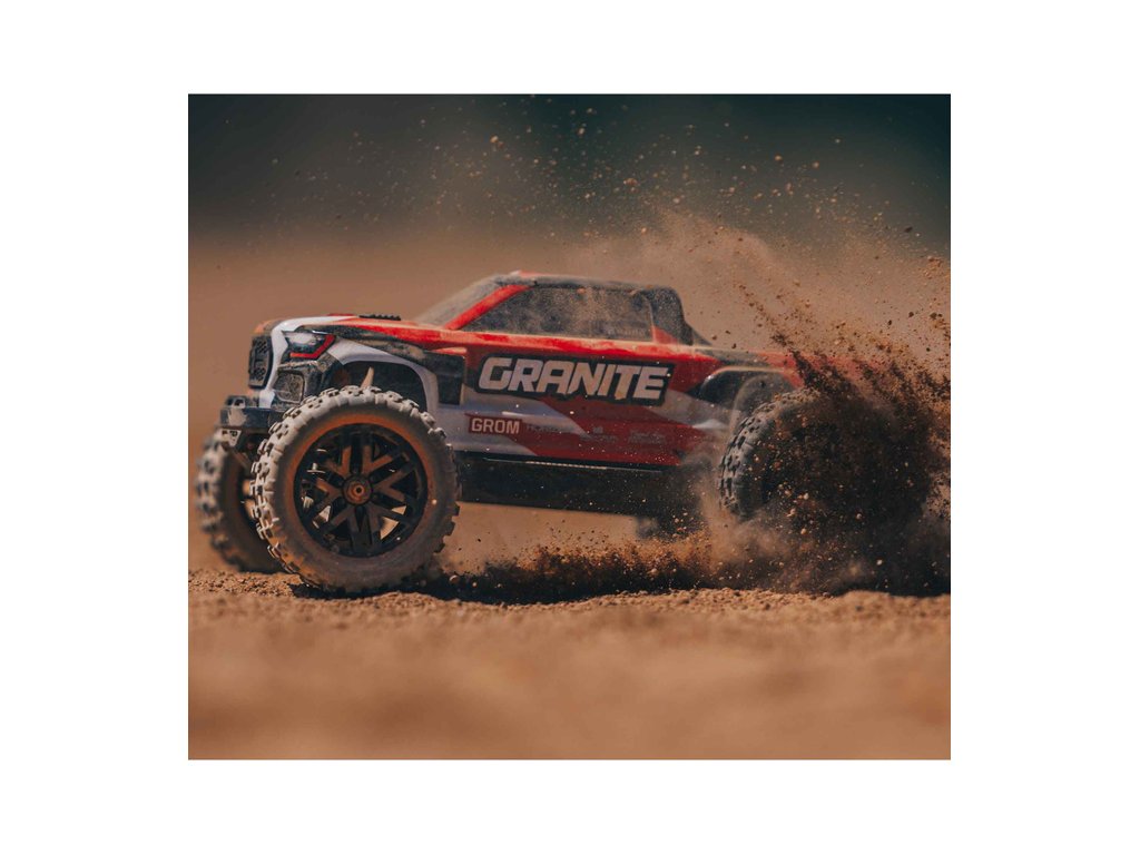 ARRMA GRANITE GROM 4X4 Monster Truck 1:18 RTR je navržen a vyroben podle stejně vysokých standardů, odolnosti a výkonů, jaké očekáváte od RC aut ARRMA. Je jen o něco menší!