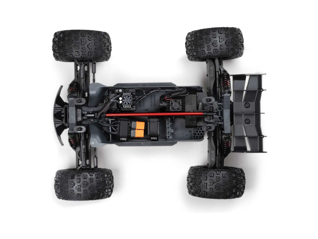 Zmíněné vylepšení se kombinují s osvědčenými vlastnostmi ARRMA 4S BLX jako jsou – hliníkové olejové tlumiče s dlouhým chodem, široké robustní ramena, až po kovové diferenciály a ocelové přední a zadní hnací hřídele EXtreme Bash CVD pro nezastavitelný přísun výkonu. Šasi modelu rovněž obsahuje populární snadno přístupnou modulární konstrukci ARRMA, aby byla běžná údržba rychlá a jednoduchá.