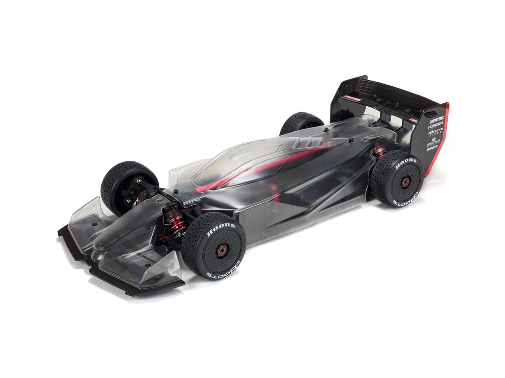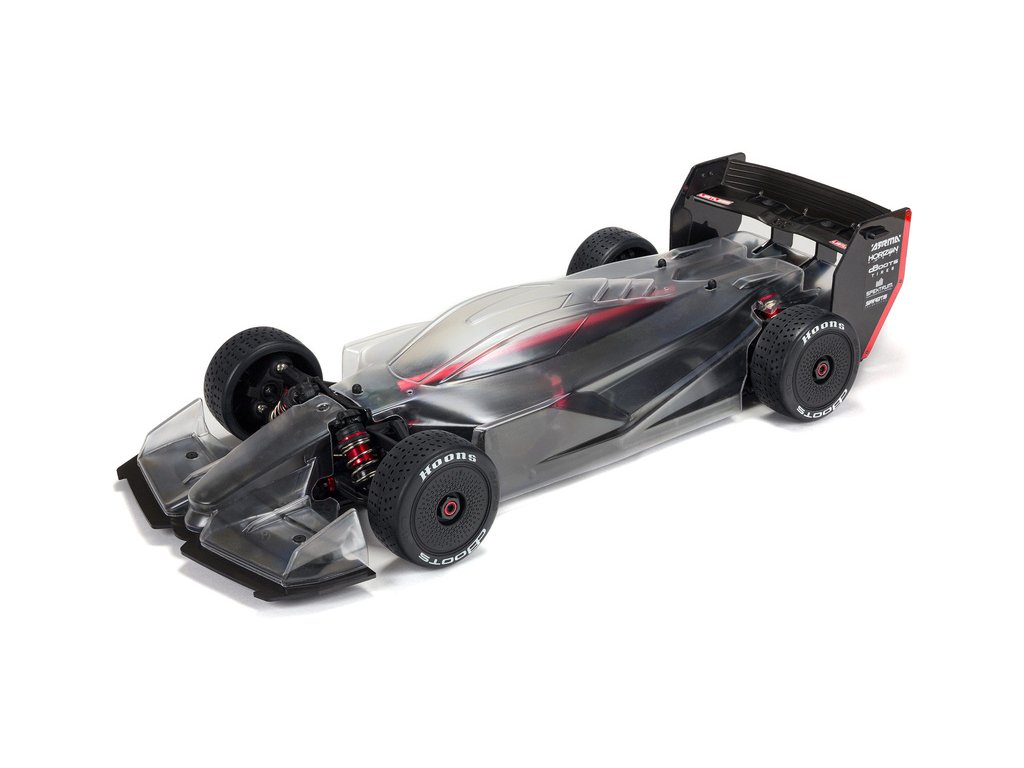 Karosérie s nízkým odporem je dodávána čirá, abyste si ji mohli vybarvit podle vlastních představ. Součástí je maska na okno a obtisky. Uložení na předním a zadním spojleru usnadňují vyladění přítlaku a odporu.