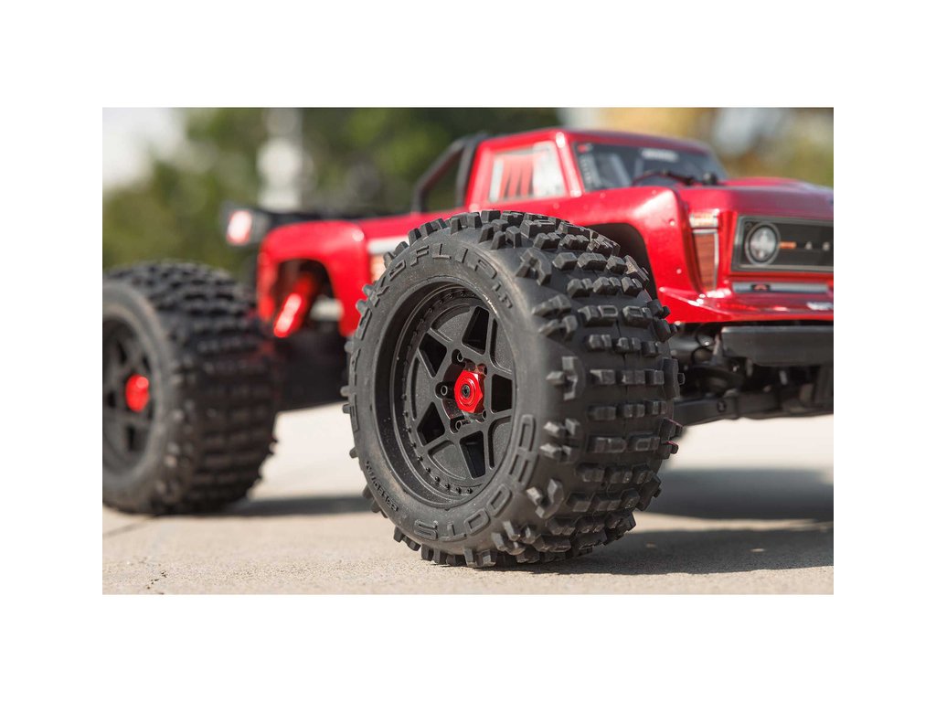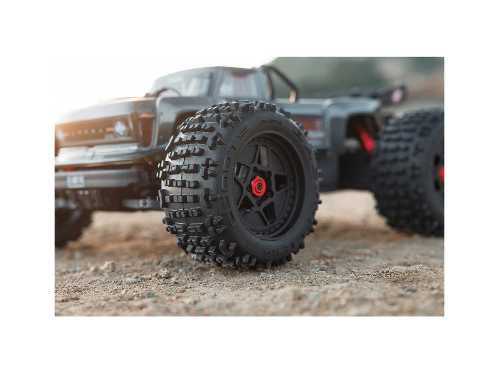 Vysoce kvalitní pryžové pneumatiky dBoots ® Back-Flip jsou nalepeny na kolech MT 3.8" s hliníkovými eloxovanými maticemi a unašečem 17 mm.