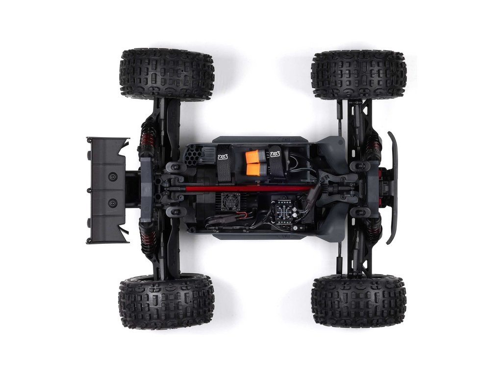 Zmíněné vylepšení se kombinují s osvědčenými vlastnostmi ARRMA 4S BLX jako jsou – hliníkové olejové tlumiče s dlouhým chodem, široké robustní ramena, až po kovové diferenciály a ocelové přední a zadní hnací hřídele EXtreme Bash CVD pro nezastavitelný přísun výkonu. Šasi modelu rovněž obsahuje populární snadno přístupnou modulární konstrukci ARRMA, aby byla běžná údržba rychlá a jednoduchá.