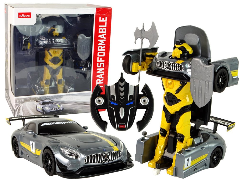Zažijte dvojnásobnou zábavu s RC modelem Mercedes-AMG GT3 1:14 Rastar, který se během okamžiku promění ze sportovního vozu v robota Transformers! Tento licencovaný model kombinuje realistický vzhled skutečného Mercedesu s funkcemi dálkově ovládané hračky a interaktivního robota.