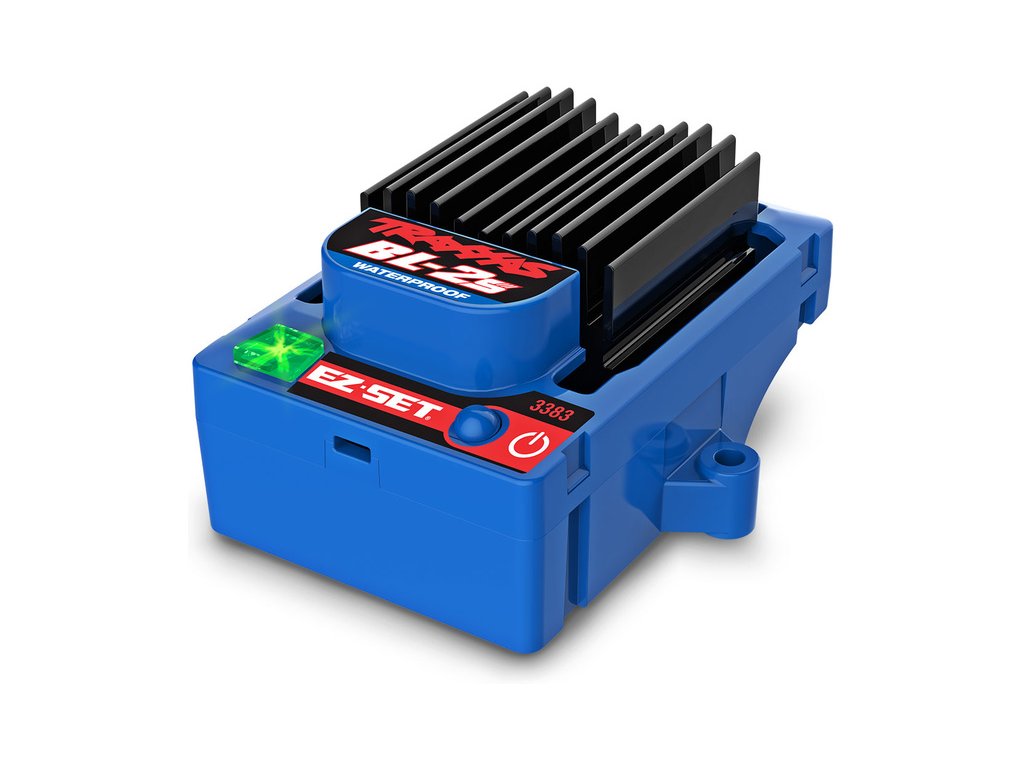Voděodolný* elektronický střídavý regulátor BL-2S se třemi jízdními režimy, podporou 2S LiPo akumulátorů a snadným ovládáním tlačítkem EZ-Set™. Regulátor je vybaven tréninkovým režimem, který omezuje plný plyn na úroveň 50%. Díky tomu se mohou začínající řidiči nebo děti postupně seznámit s vlastnostmi modelu a připravit se na plnou sílu auta. Tepelná ochrana, ochrana proti podvybití LiPo akumulárů, pozlacené konektory, jednoduché ovládání, intuitivní signalizace dvoubarevnou LED diodou a výkonný chladič, který lze doplnit o volitelný ventilátor (není obsahem balení).