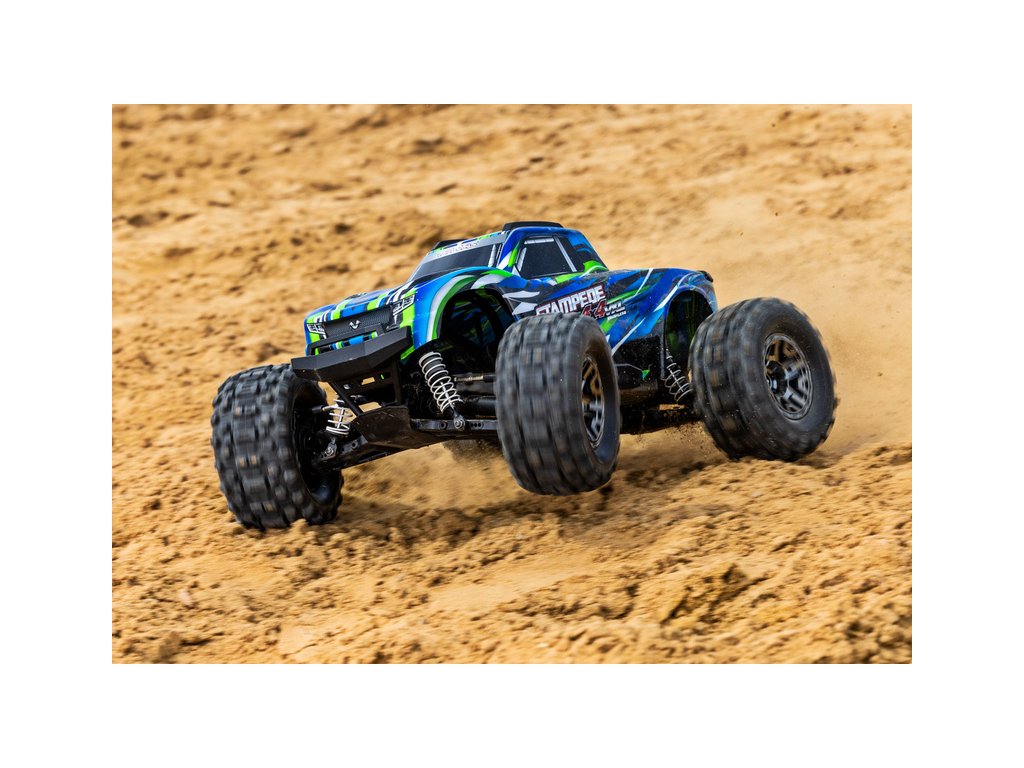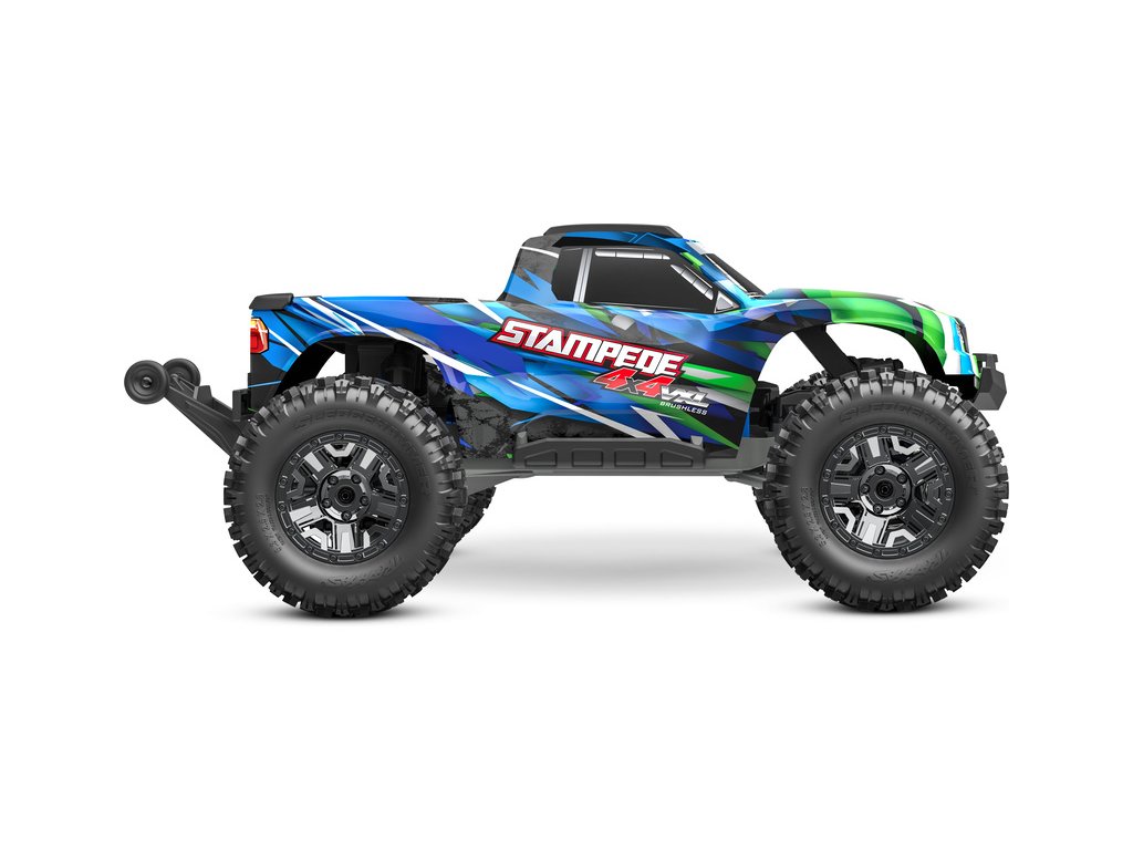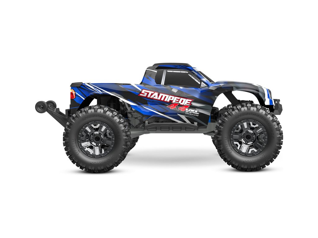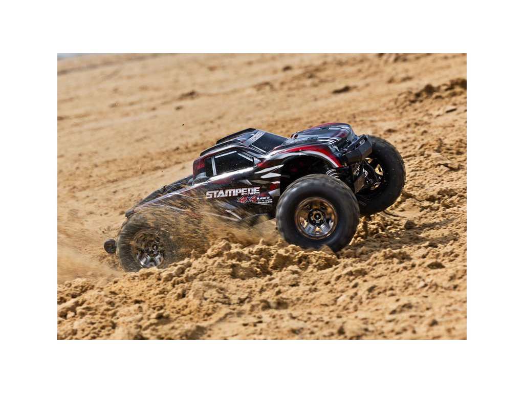 RC model auta Stampede 4x4 VXL je zpět – větší a silnější než kdykoli předtím! Díky nadrozměrnému střídavému motoru 540XL v kombinaci s osvědčeným regulátorem VXL-3S se model hravě a zábavně dostane přes všechny překážky a to rychlostí až 96 km/h. K výborné ovladatelnosti přispívá náhon 4x4 a elektronická stabilizace jízdy TSM. Pro vysokou odolnost je Stampede továrně vybaven sadou Extreme Heavy Duty. Použit je rychloupínací systém uchycení karoserie pro čistý vzhled a snadnou výměnu baterie. Pro náročné výzvy v terénu jsou použity pneumatiky SledgeHammer.