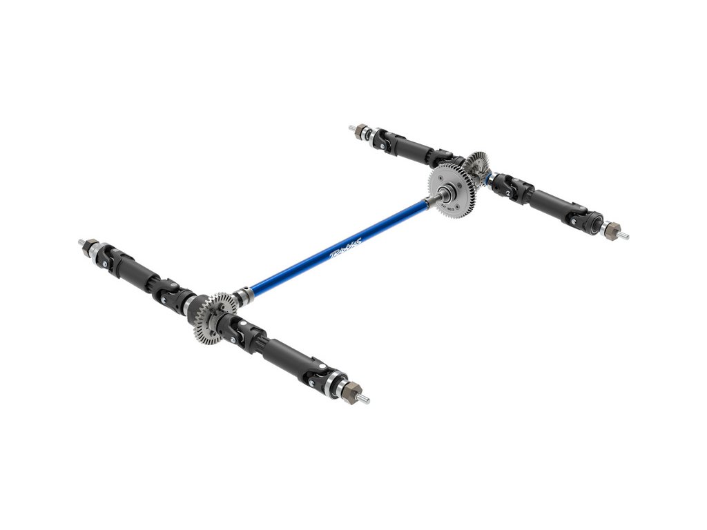 Extrémní výkon, vyžaduje maximálně odolné komponenty. Proto pohonné ústrojí tvoří ocelové čelní kolo, středový diferenciál pro distribuci výkonu mezi přední a zadní nápravu. Dále je točivý moment přenášen středovou hřídelí z extrudovaného hliníku k přednímu a zadnímu diferenciálu a následně ke kolům přes robustní teleskopické poloosy. Všechny rotační části jsou uloženy v kvalitních zapouzdřených ložiscích. Diferenciály jsou osazeny kovovými převody pro nejvyšší odolnost.