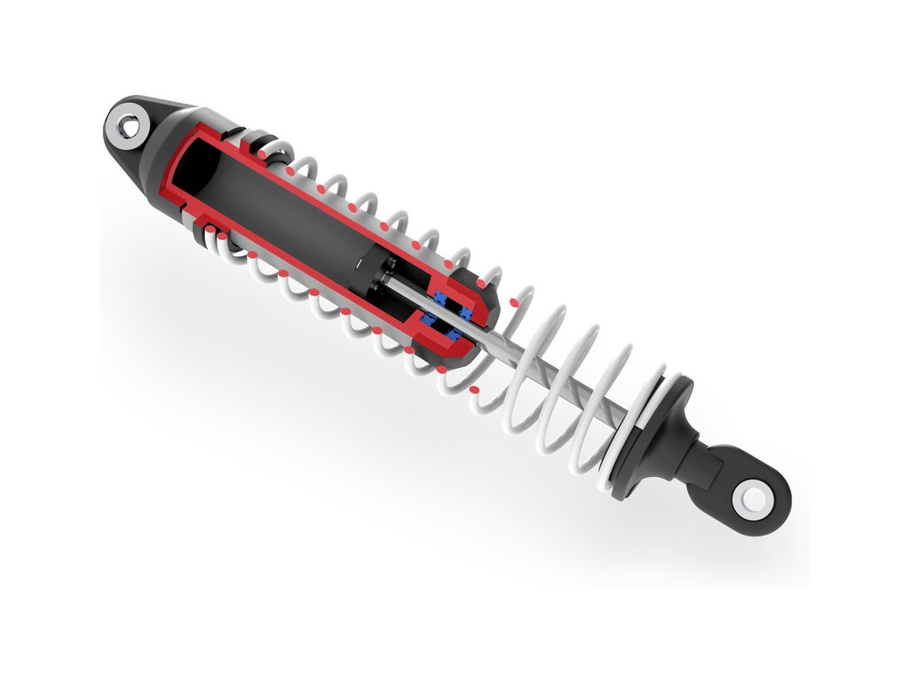 Olejové tlumiče s vysokým zdvihem využívají duální X-kroužky pro dokonalé utěsnění a perfektní chod. Robustní design v kombinaci s vysokým objemem oleje dokáže absorbovat i tvrdé nárazy v těžkém terénu. Tlumiče si můžete naladit podle svých představ úpravou pružin a změnou viskozity oleje.