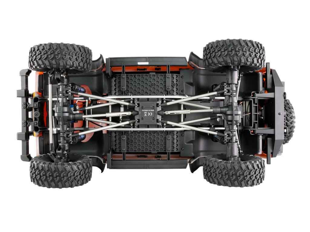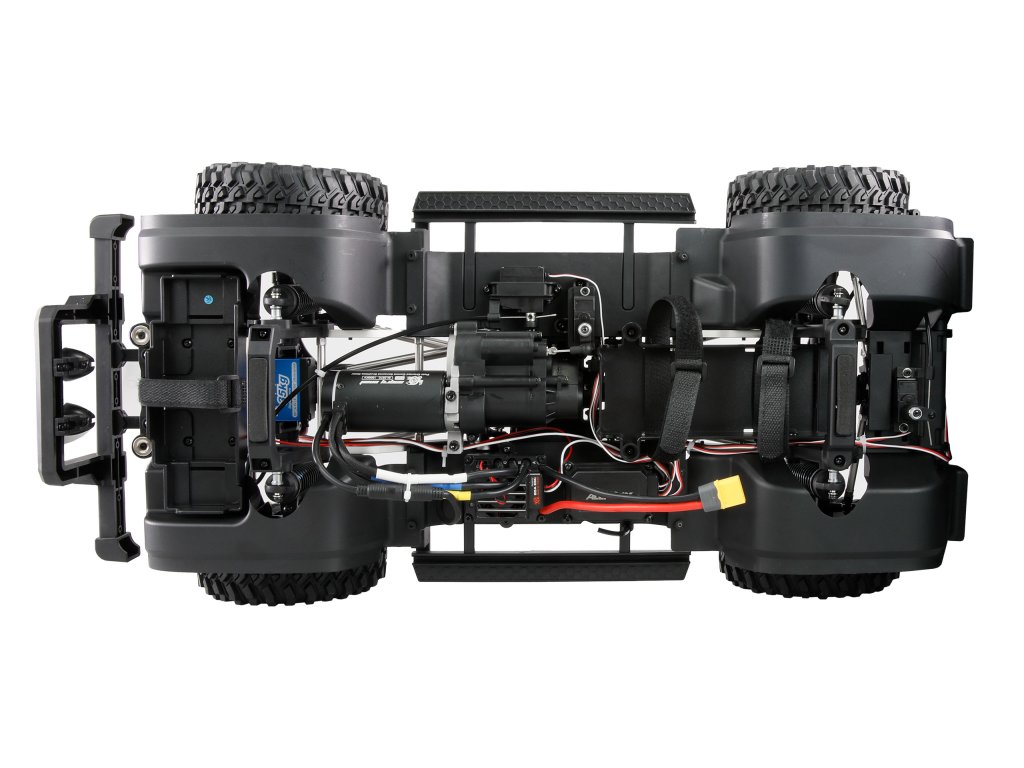 Výkonný střídavý motor 3970 má kódovací senzor s podporou čipu, který pracuje 60krát přesněji než běžné Hallovy senzory v jiných střídavých motorech. O přesné řízení se stará servo s kovovým převodem a ovládací silou 35 kg. Dvoustupňová převodovka s kovovými převody umožňuje výkonný crawler režim i rychlou jízdu. Vestavěný systém osvětlení se 140 LED diodami nabízí různé režimy osvětlení. Portálové nápravy s individuálně uzamykatelnými diferenciály pomocí dálkového ovládání zvyšují světlou výšku a díky přídavnému převodu zvyšují pohon kol.