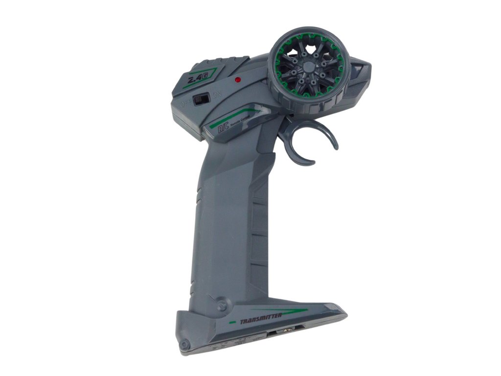 Ovládání probíhá pomocí dálkového ovladače na frekvenci 2.4 GHz, který poskytuje spolehlivé spojení bez rušení a umožňuje plynulé řízení vpřed, vzad i zatáčení vlevo a vpravo. Jednoduchá ergonomie ovladače je vhodná i pro méně zkušené uživatele.