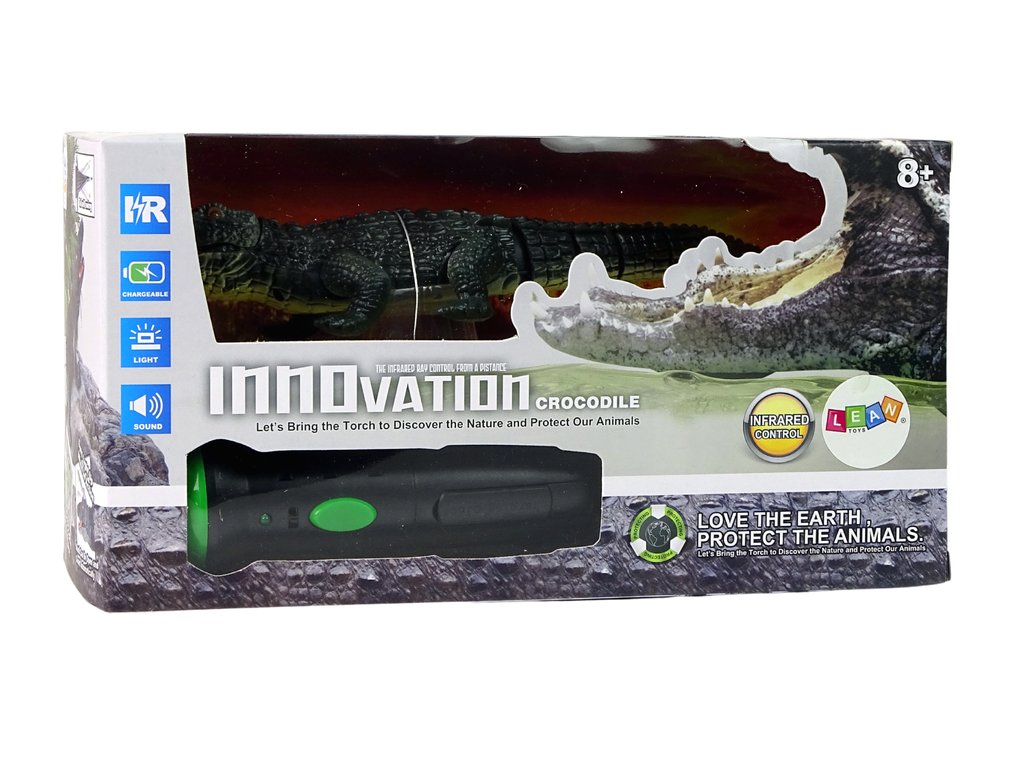 Krokodýl se pohybuje dopředu, dozadu a otáčí tělem, což vytváří iluzi živého zvířete. Pomocí infračerveného ovladače ve tvaru baterky můžete krokodýla jednoduše řídit. Speciální funkcí je reakce na světlo – krokodýl sleduje paprsek světla z baterky a pohybuje se za ním!