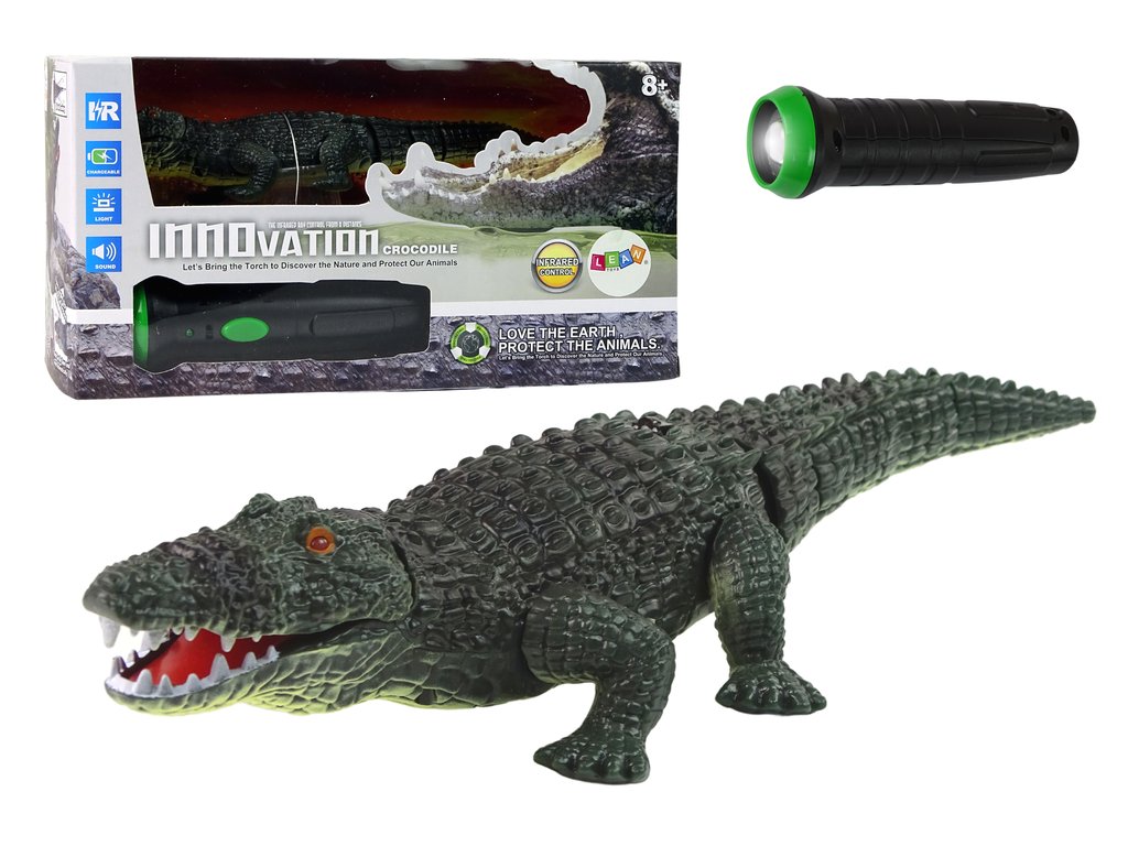 RC krokodýl s ovládáním pomocí světelné baterky – realistický pohyb a svítící oči