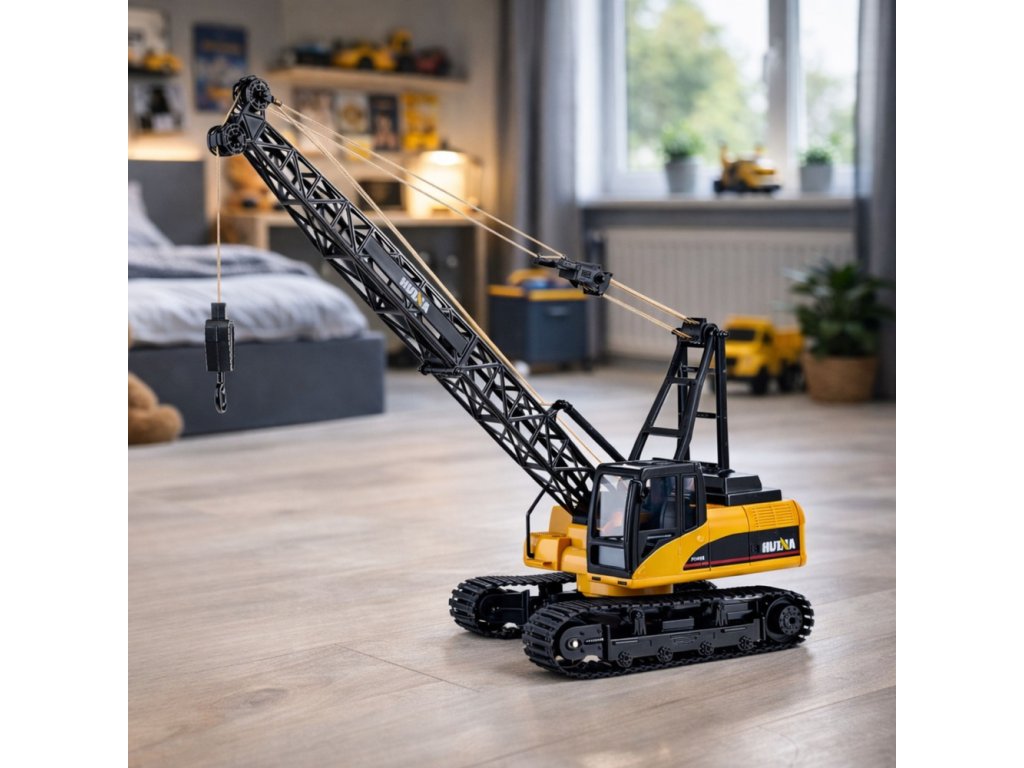 RC pásový jeřáb HUINA 1:14 je detailně zpracovaný model, který věrně napodobuje vzhled i funkce skutečného stavebního jeřábu. Díky 15kanálovému ovládání má uživatel plnou kontrolu nad každým pohybem – může otáčet kabinou o 360°, manévrovat pásy a přesně zvedat i spouštět hák.