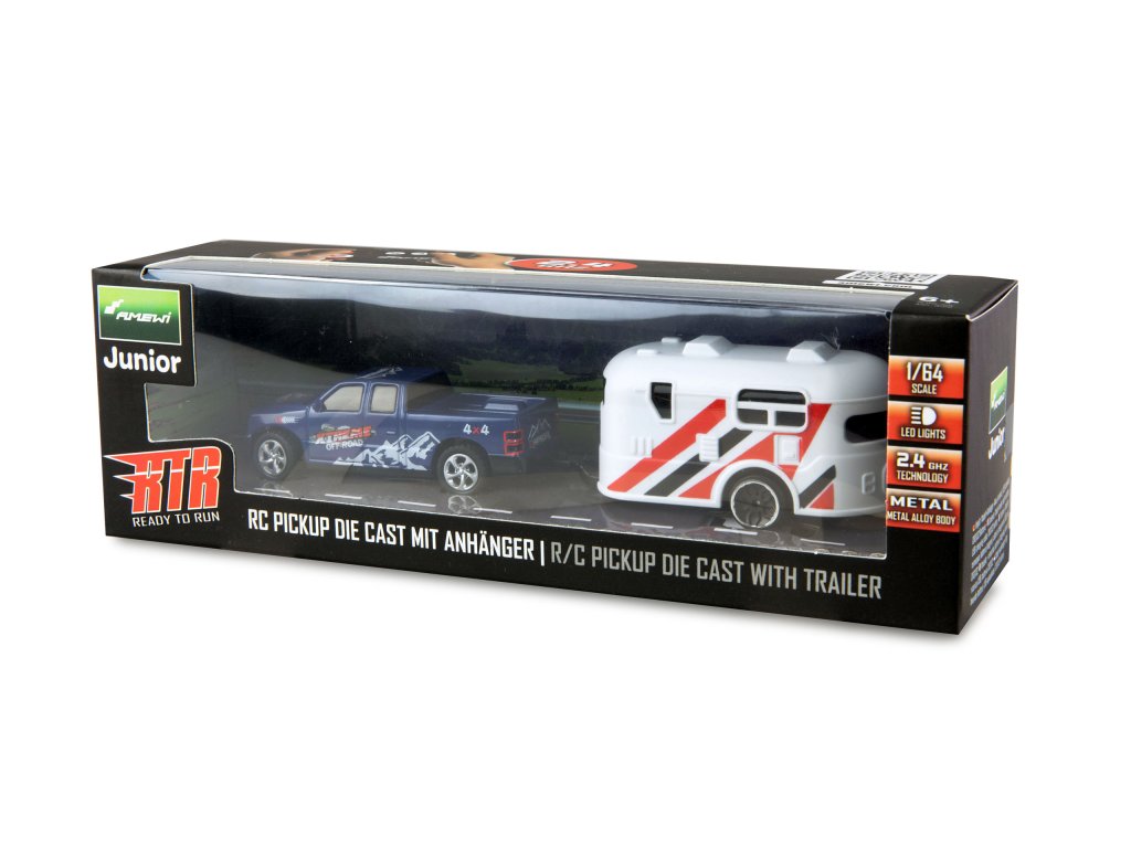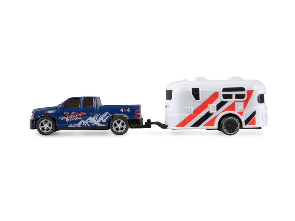 RC pickup Die Cast s karavanovým přívěsem 1:64 modrý