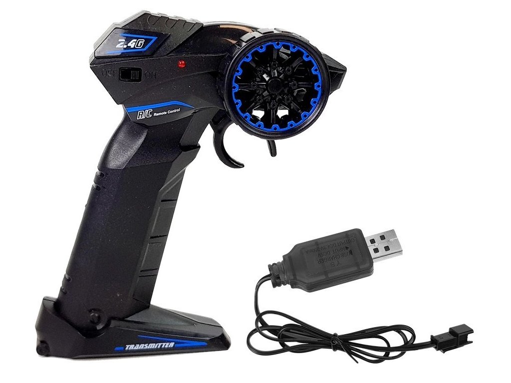 Dálkové ovládání má pohodlnou rukojeť a je bezdrátové. Vysílá na frekvenci 2,4 Ghz, takže můžete závodit ve větší skupině bez obav ze vzájemného rušení. Můžete jej řídit dopředu, dozadu i do stran. Vytvořte si vlastní dráhu a začněte závodit!
