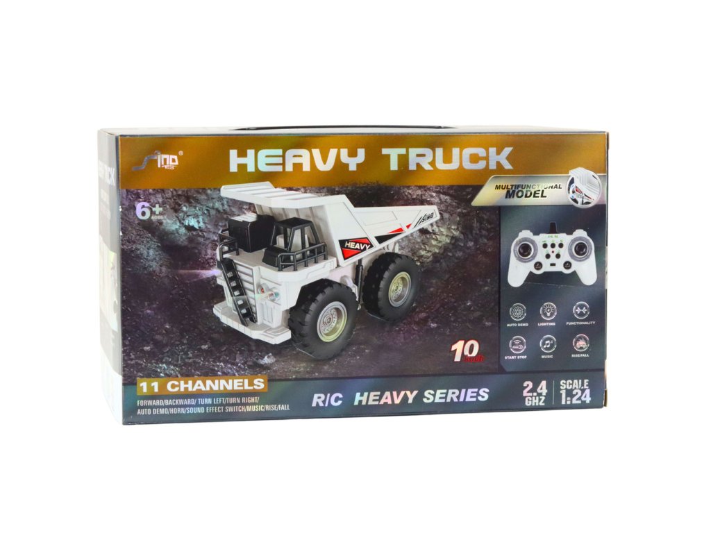 RC heavy truck stavební sklápěč v měřítku 1:24 je detailně zpracovaný dálkově ovládaný model inspirovaný skutečnými stavebními vozidly. Nabízí realistický vzhled, funkční prvky a zábavné efekty, které přenášejí hru přímo na staveniště.