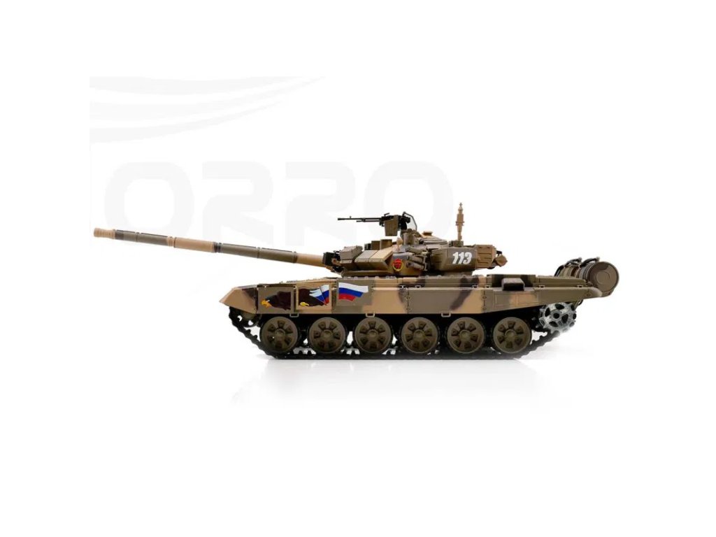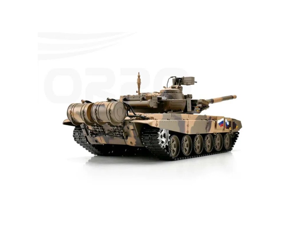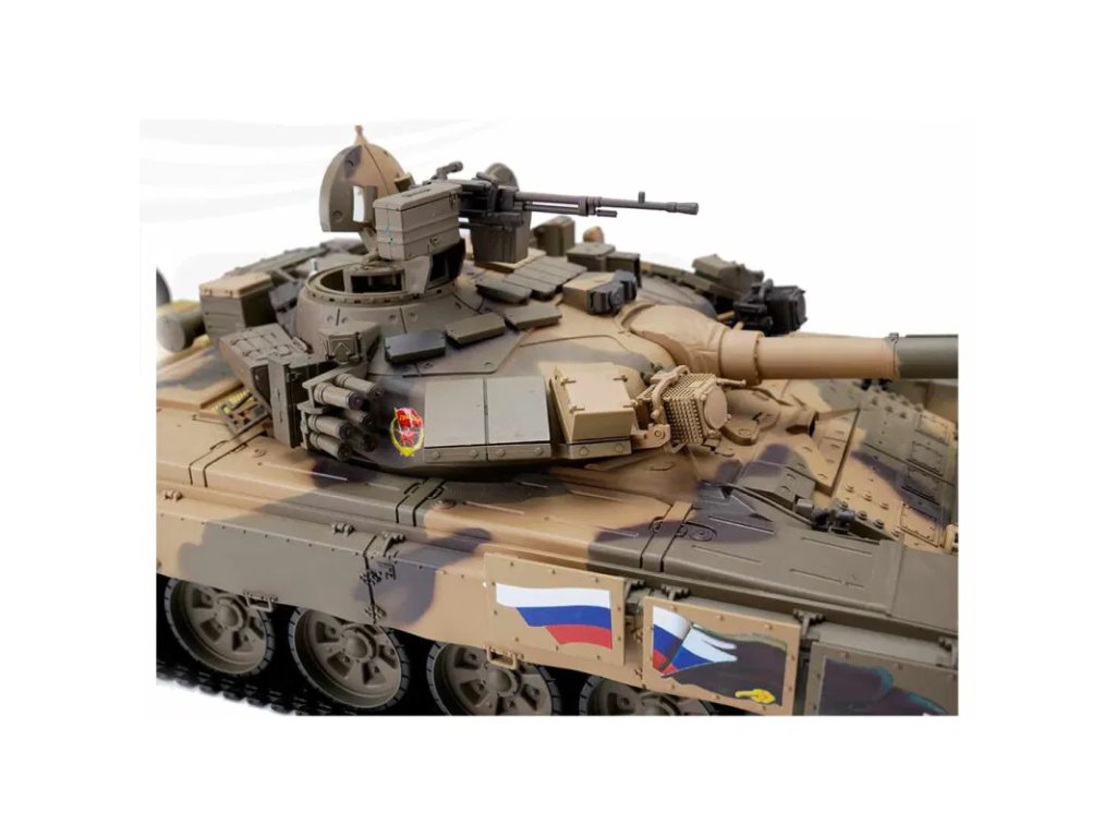 T-90 představuje moderní hlavní bojový tank vycházející z konstrukce T-72. Během své služby prošel řadou modernizací zaměřených na zvýšení bojové efektivity, ochrany a palebné síly. V této RC verzi v měřítku 1:16 je zpracován s důrazem na detail a realistické funkce.