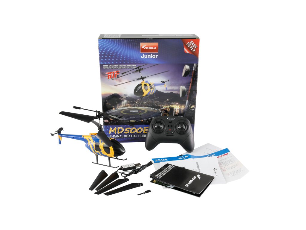 S RC vrtulníkem MD500E CX je vstup do světa modelářského letectví dětskou hrou – tato RC helikoptéra je připravena k použití ihned po vybalení a zaujme svou snadnou ovladatelností, a proto je ideální pro začátečníky. Díky koaxiálnímu rotorovému systému je zaručeno obzvláště stabilní letové chování. Začátečníci se tak mohou v klidu vyřádit ve svém novém koníčku.