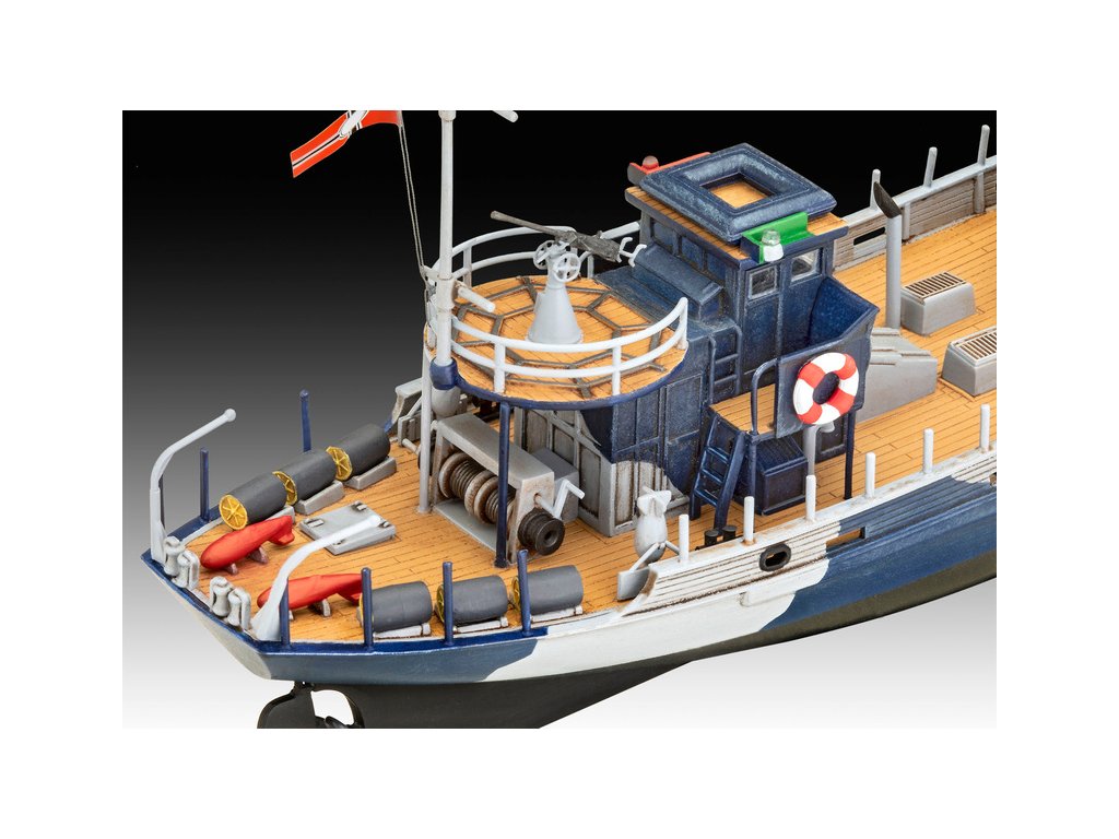 Revell plastikový model KFK (Kriegsfischkutter) v měřítku 1:144 ke slepení. Stavebnice obsahuje 102 dílků, délka 16.8 cm, obtížnost 4.