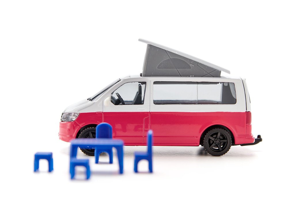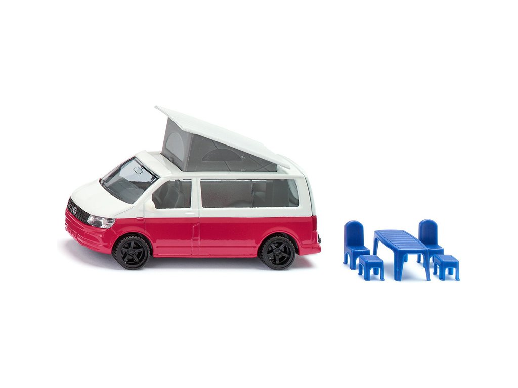 Kovový model auta Volkswagen T6 California v měřítku 1:50 od značky Siku. Má otevírací střechu a zadní dveře. Jako příslušenství auta jsou obsaženy židličky se stolečkem. Vhodné pro hraní i sběratelství. Kvalitní zpracování z kovu a plastu.