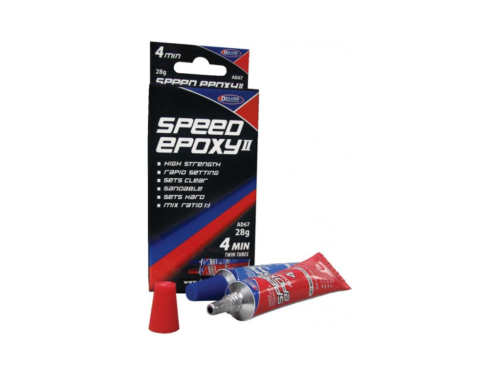 Epoxidové lepidlo Speed Epoxy II 4 min je vhodné pro díly, které jsou vystaveny vibracím. Vytváří dlouhodobě pružné a pevné spojení. Speed Epoxy II 4 min by neměl být použit pro lepení v místech, které podléhají dlouhodobému působení vody - např. ponořené části lodí. Ale bez problému může být použit pro lepení vnitřních částí trupů lodí. Lepí i polyesterové pryskyřice. Po smíchání s mikrobalony lze vytvořit rychlý správkový tmel. Spoj lze namáhat po 15 minutách, plná pevnost je dosažena po 1 hodině.