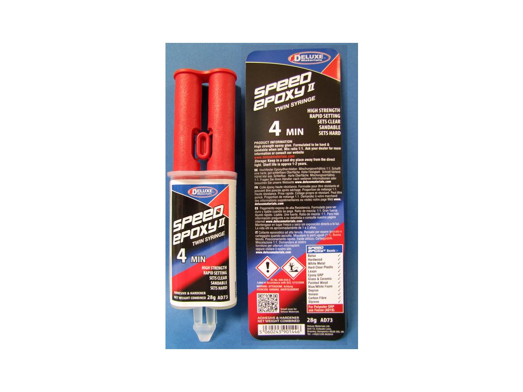 Epoxidové lepidlo Speed Epoxy II 4 min je vhodné pro díly, které jsou vystaveny vibracím. Vytváří dlouhodobě pružné a pevné spojení. Speed Epoxy II 4 min by neměl být použit pro lepení v místech, které podléhají dlouhodobému působení vody - např. ponořené části lodí. Ale bez problému může být použit pro lepení vnitřních částí trupů lodí. Lepí i polyesterové pryskyřice. Po smíchání s mikrobalony lze vytvořit rychlý správkový tmel. Spoj lze namáhat po 15 minutách, plná pevnost je dosažena po 1 hodině.
