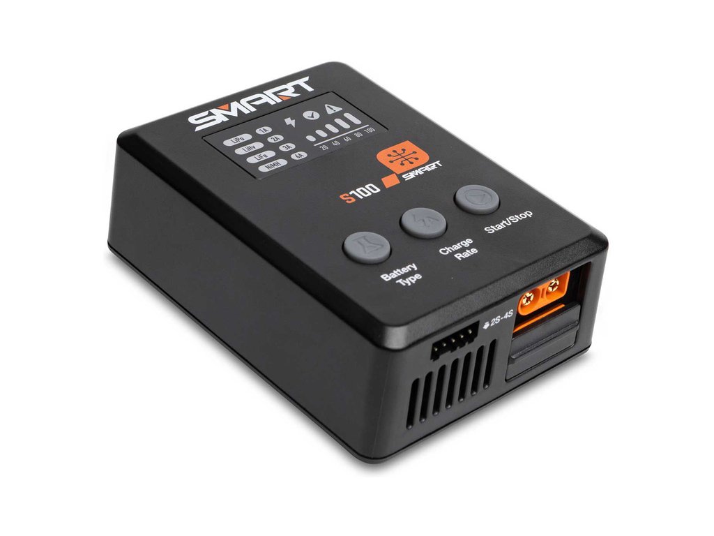 Se svým výkonem až 100 W (65 W s obsaženým zdrojem), novým uživatelským rozhraním a schopností rychle nabíjet Smart baterie na integrovaném výstupním portu IC3® nebo IC5®, nabízí nabíječ S100 všestranné a bezproblémové nabíjení. S nabíječem S100 můžete nabíjet prakticky jakoukoli baterii typu LiPol, LiHV, LiFe s balančním konektorem, baterie SMART s datovým kabelem. Nabíječ rozpozná parametry baterie SMART a po připojení automaticky zahájí bezpečné a přesné nabíjení. Používejte nabíječ se Smart bateriemi a budete ohromeni jeho funkčností a výkonem.