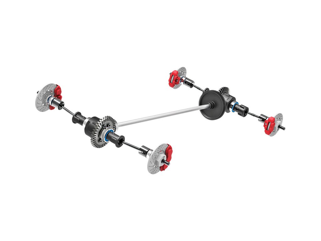 Výborné jízdní vlastnosti modelu umožňuje pohon všech kol. Točivý moment je přenášen od motoru přes středovou hnací hřídel, diferenciály a poloosy až ke kolům. Všechny hřídel jsou uloženy v ložiscích pro maximální účinnost.