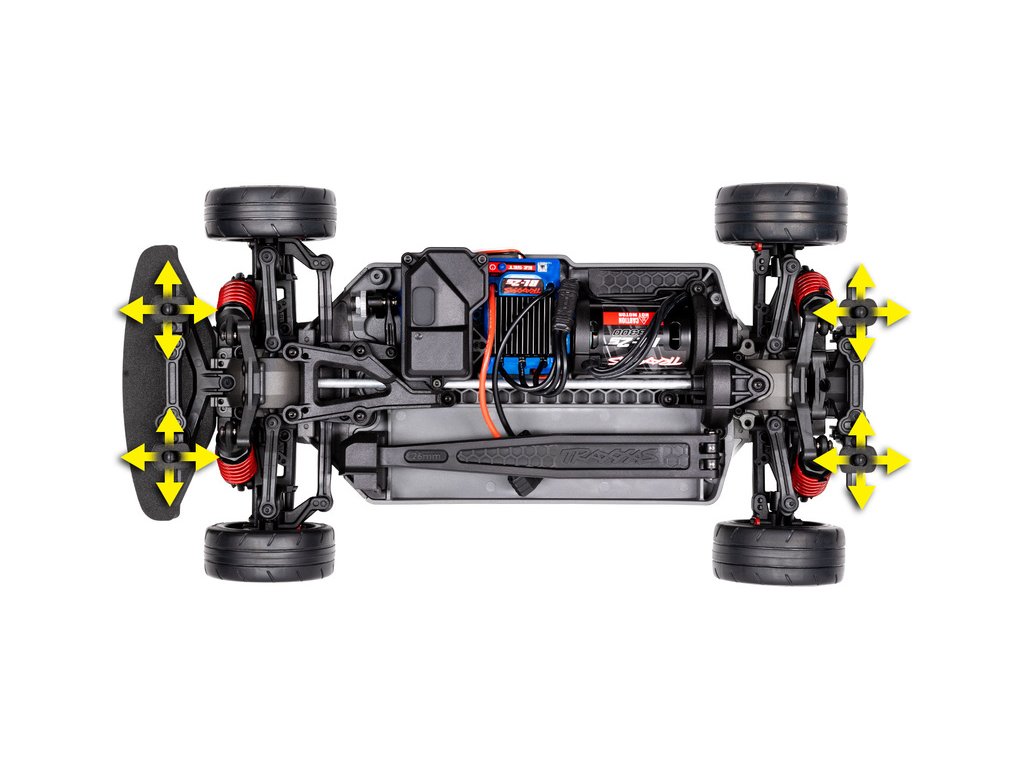 Traxxas pamatoval na to, že každá karosérie má specifické tvary a tedy i jiná místa pro optimální upevnění. Proto jsou na podvozku Traxxas 4-Tec 2.0 použity stavitelné držáky karosérie, takže můžete Vaši karosérii upevnit v tom nejvhodnějším místě.