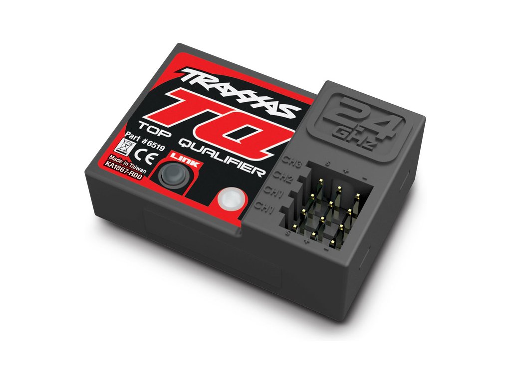 Tří-kanálový přijímač Traxxas TQ 2.4 GHz, zajišťuje bezpečné řízení bez výpadků. Snadné spárování jedním tlačítkem. Indikace stavu pomocí LED diody.