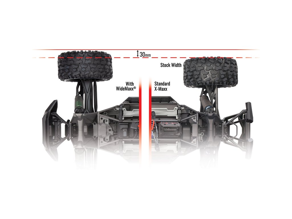 RC model auta X-Maxx, který vše překonává brutální silou, teď můžete vylepšit pomocí rozšiřující sady WideMaxx. Sada WideMaxx rozšíří rozchod kol o 60 mm, díky tomu bude model více stabilní a umožní ještě agresivnější jízdu.