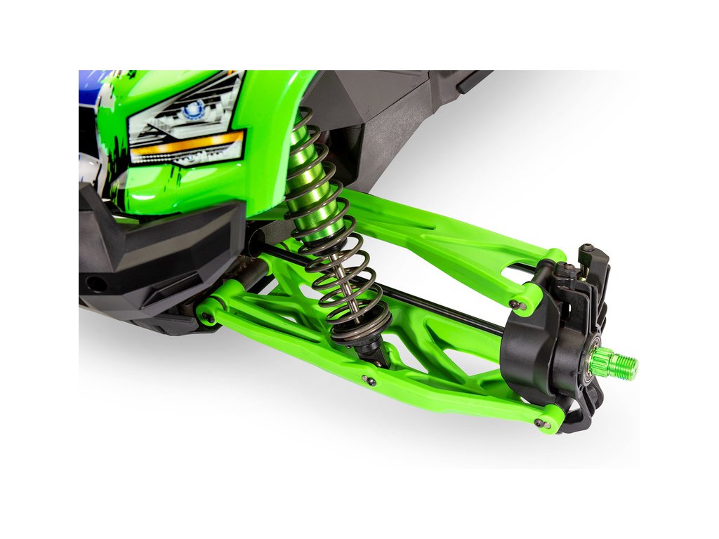 Nová ramena jsou vyrobena z nejodolnějšího kompozitního materiálu, který Traxxas vyvinul a nabízejí přesnou rovnováhu mezi tvrdostí a pružností. Nový materiál je také vhodný do chladného zimního počasí, při kterém je méně náchylný k prasknutí. Přiložené pružiny, s tuhostí 1.346, nahrazují standardní pružiny a poskytují výborné jízdní vlastnosti. Širší rozchod si vyžádal i delší poloosy a spojovačky řízení, díky promyšlené konstrukci je však montáž sady snadná a rychlá.