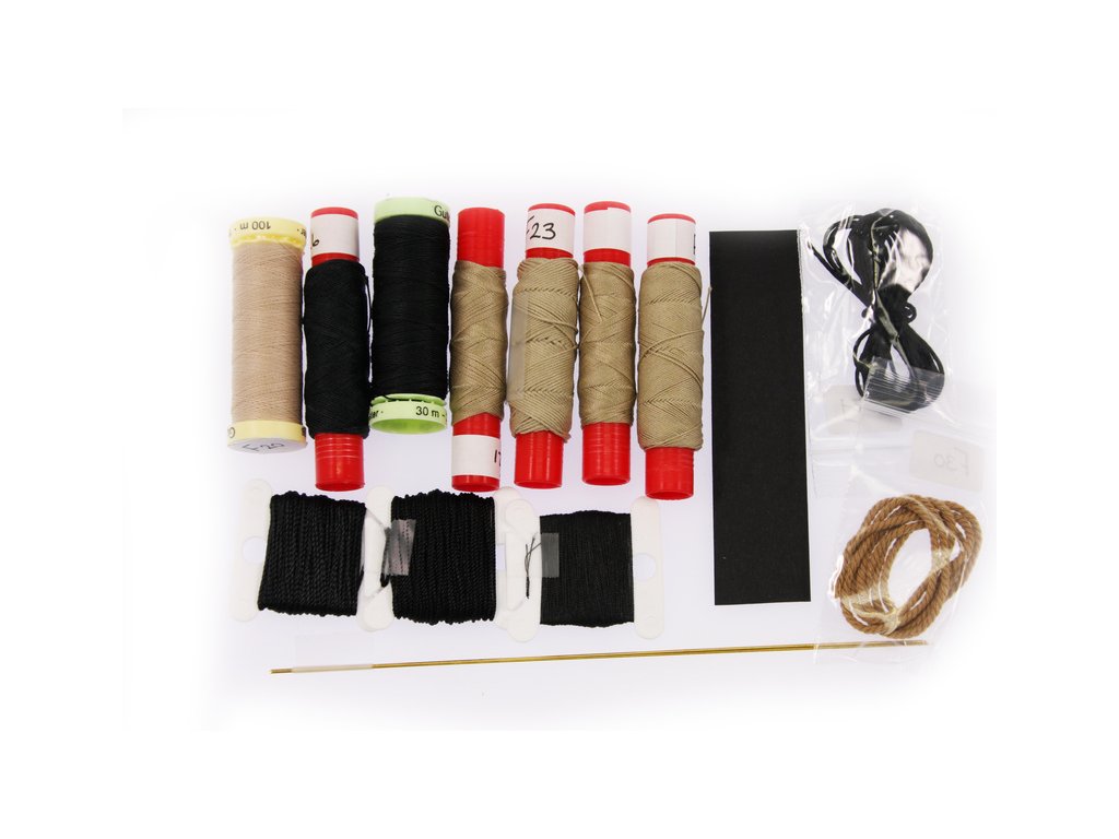 - Více velikostí černé i přírodní nitě na lanoví spolu se všemi potřebnými oky a prvky