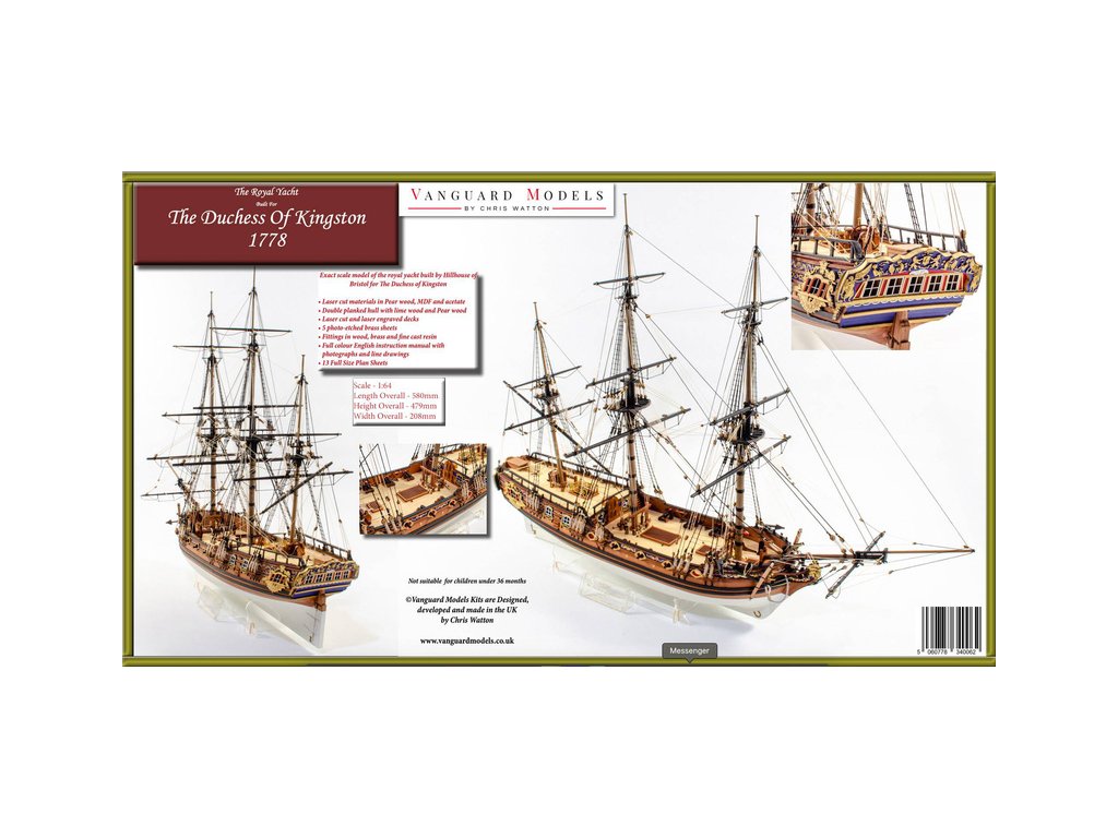 Stavebnice modelu lodi Vanguard Models Duchess of Kingston 1778 v měřítku 1:64. Loď s množství detailů a klasických prvků. Stavba převážně ze dřeva, laserem řezané díly, mosazné kování. Výhodou stavebnice je detailní obrázkový manuál krok po kroku.
