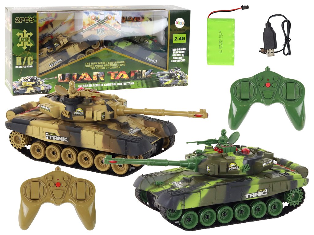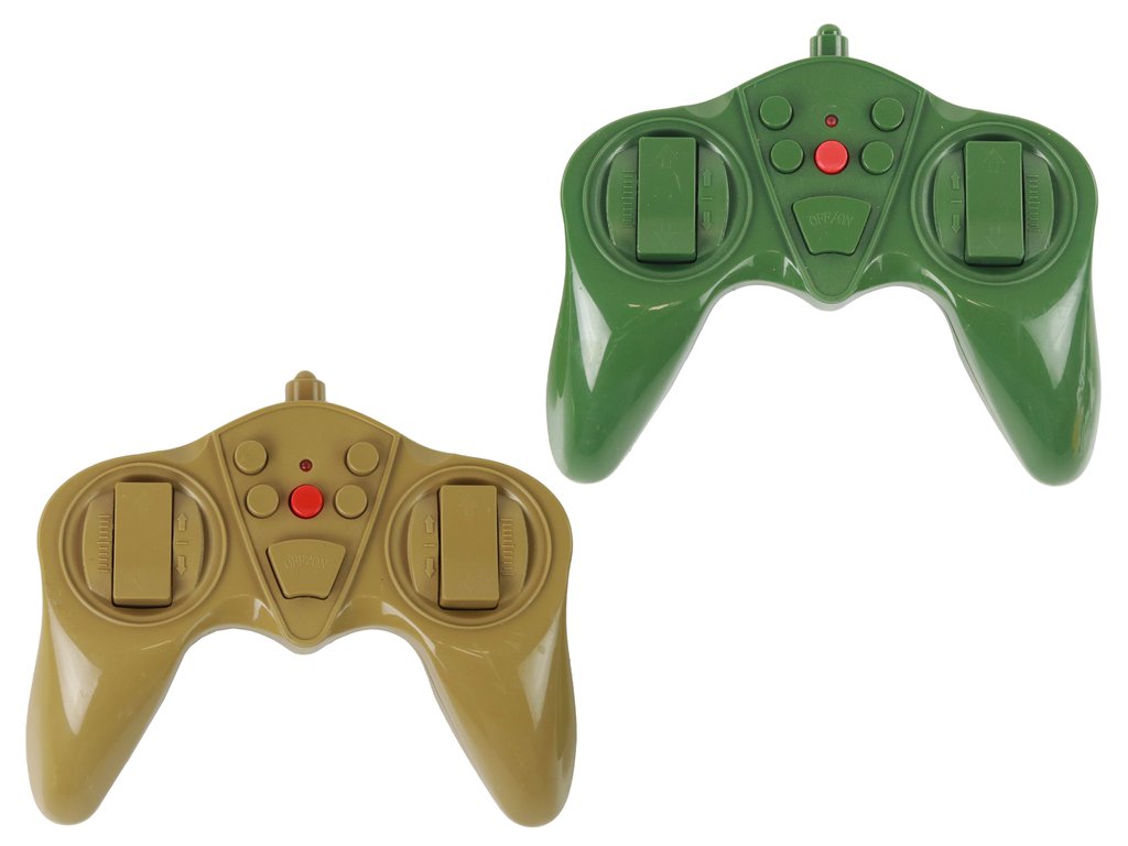 Sada dvou dálkově ovládaných bojových tanků je ideální nabídkou pro milovníky vojenské zábavy. Každý tank zaujme svou impozantní délkou, která činí celých 44 cm. Dálkové ovládání umožňuje plnou kontrolu nad pohybem tanku, stejně jako přesné řízení řídicí věže, která se otáčí o 300 stupňů.