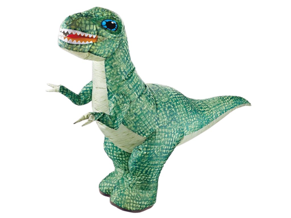 Dinosaurus se nafoukne automaticky – stačí jej zapnout a vestavěný mechanismus během 20–30 sekund naplní tělo vzduchem. Není potřeba žádná pumpa ani manuální práce. Po zapnutí je tak model rychle připraven k akci.