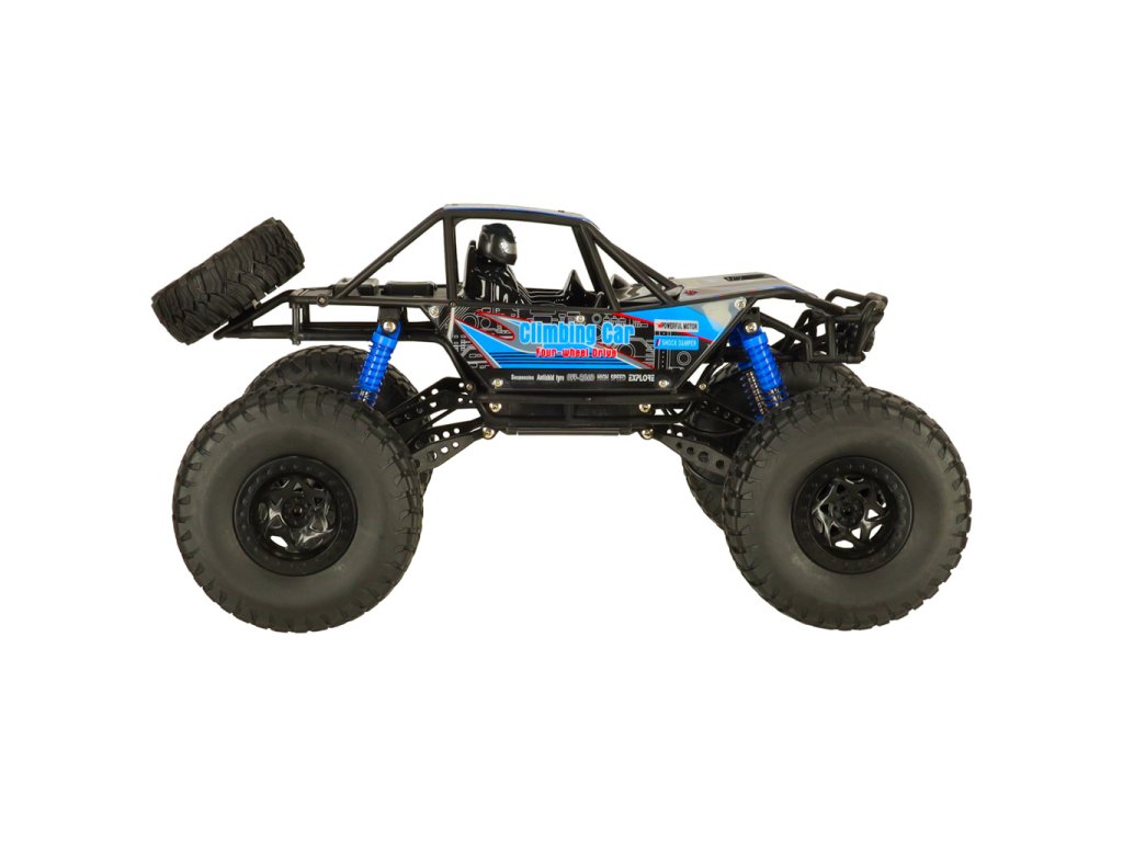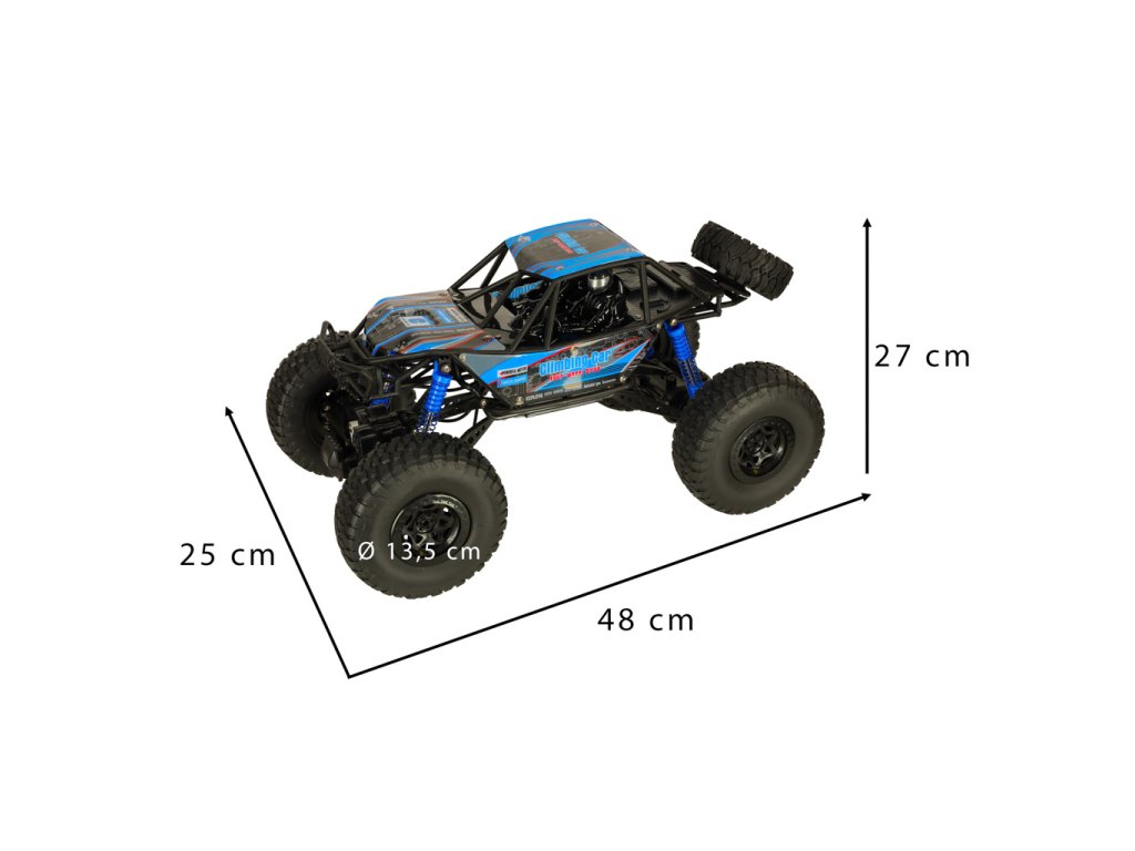 Tento velký terénní crawler zaujme už na první pohled svými rozměry a robustním zpracováním. Díky kombinaci pohonu všech kol (4WD), výkonného odpružení a extra velkých gumových pneumatik s průměrem 13,5 cm zvládne téměř jakoukoli překážku, která se mu postaví do cesty. Nezastaví ho kameny, písek, tráva ani menší kaluže – voděodolné provedení umožňuje jízdu i po mokrém terénu bez obav z poškození.