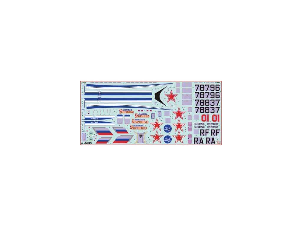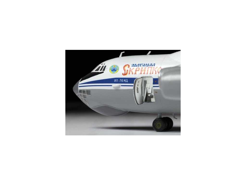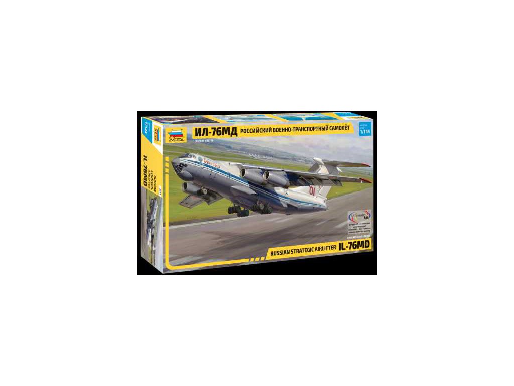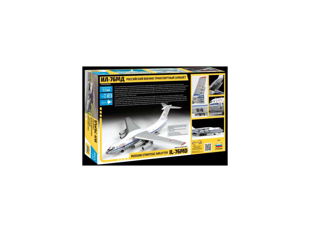 Plastikový model Zvezda 7011 - letadlo Iljušin IL-76MD v měřítku 1:144 ke slepení. Stavebnice obsahuje 207 dílků, délka 320 mm, obtížnost 3.