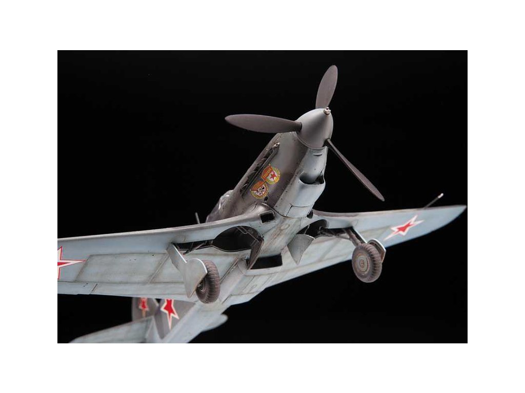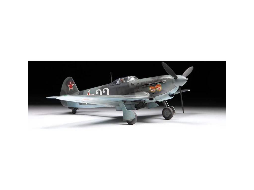 Plastikový model Zvezda 4815 - letadlo Jakovlev Jak-9 z období druhé světové války v měřítku 1:48 ke slepení. Stavebnice obsahuje 198 dílků, délka 177 mm.